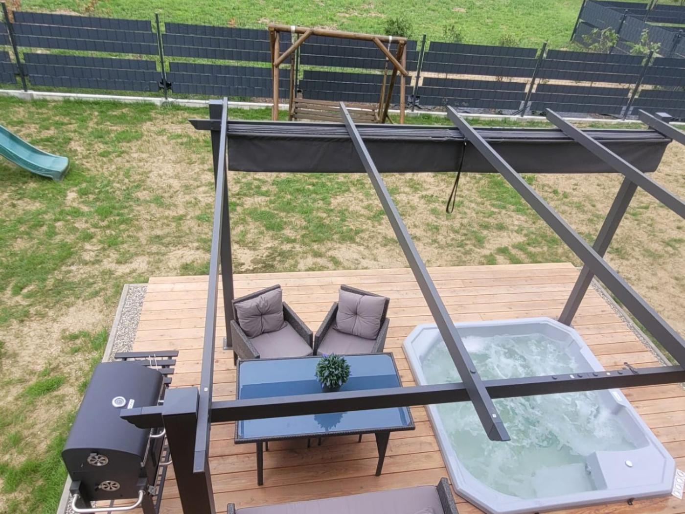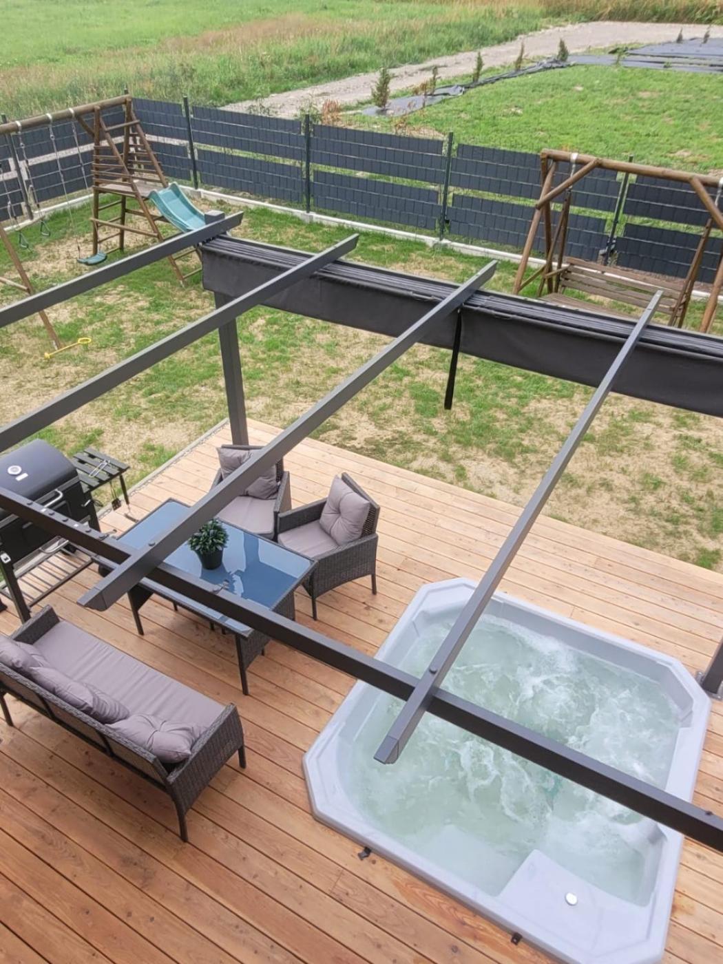 Dom z 3 sypialniami. Guests will have a special experience as this holiday home provides a hot tub. Featuring a private entrance, this air-conditioned holiday home is comprised of 1 living room, 3 separate bedrooms and 2 bathrooms with a shower and a hairdryer. Guests will find a stovetop, a refrigerator, a dishwasher and kitchenware in the well-equipped kitchen. The holiday home also has a barbecue. Boasting a terrace with garden views, this holiday home also offers a washing machine and a flat-screen TV with streaming services. The unit offers 5 beds. Dom wakacyjny - 9 osobowy. Powierzchnia pokoju ok.: 100 mkw.