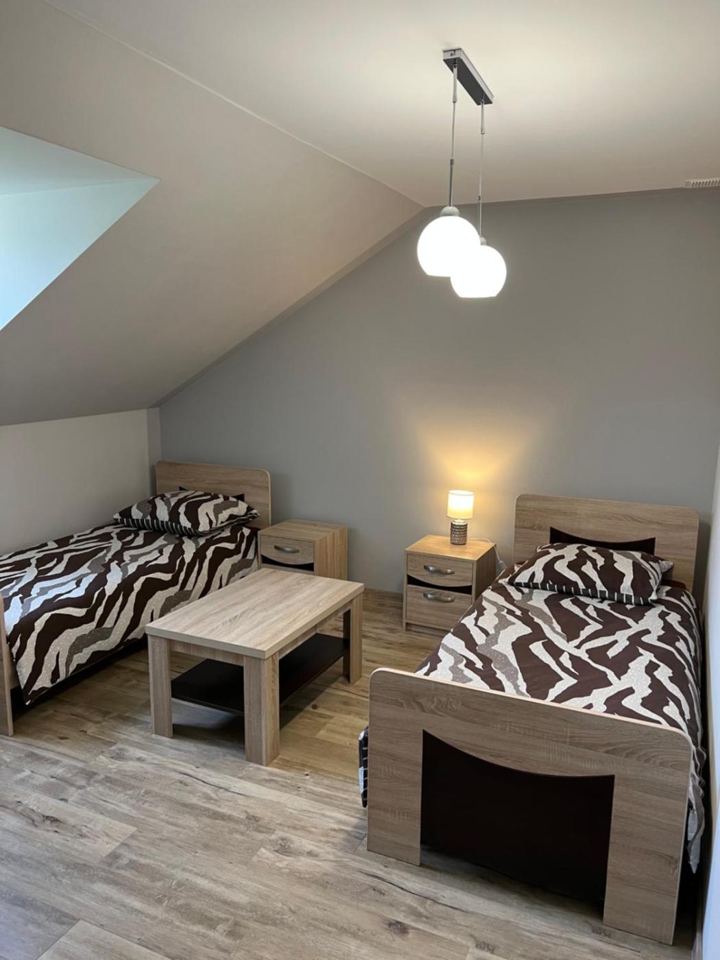 Pokój Trzyosobowy z prywatną łazienką. This triple room is air-conditioned and has a private bathroom, a dining area and garden views. The unit has 2 beds. Pokój Trzyosobowy - 3 osobowy. Powierzchnia pokoju ok.: 18 mkw.