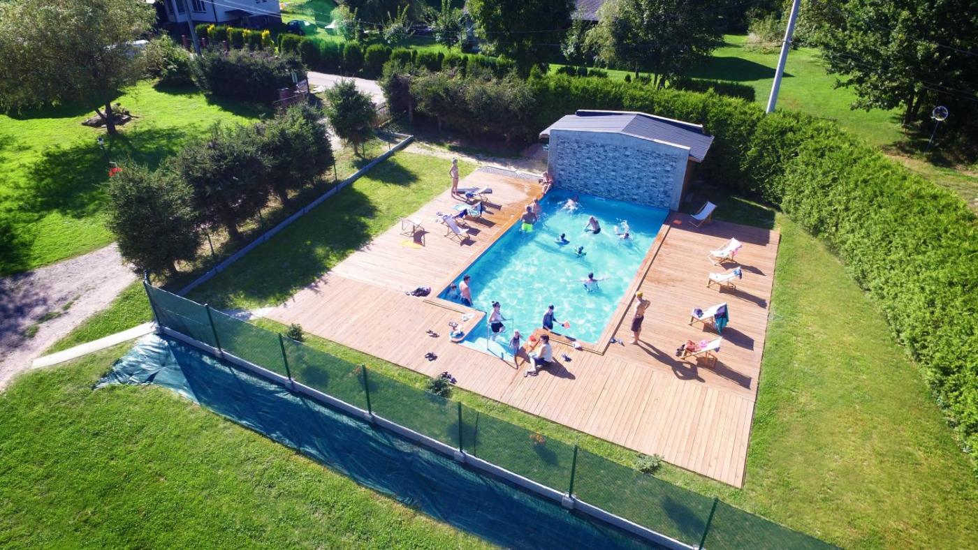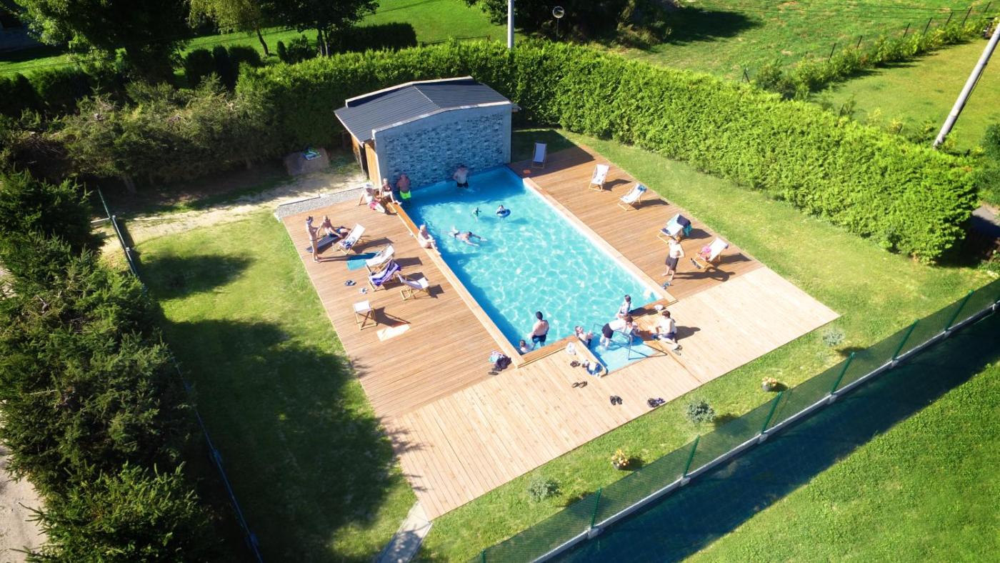 Dom z 2 sypialniami. This holiday home features a private pool and a fireplace. Boasting a private entrance, this holiday home features a kitchenette, 2 bedrooms and 1 bathroom with a walk-in shower and a bath or a shower. The holiday homes kitchenette, which has kitchenware, is available for cooking and storing food. Featuring a terrace with garden views, this holiday home also features a wardrobe and a flat-screen TV. The unit has 3 beds. Dom wakacyjny - 4 osobowy. Powierzchnia pokoju ok.: 50 mkw. ;