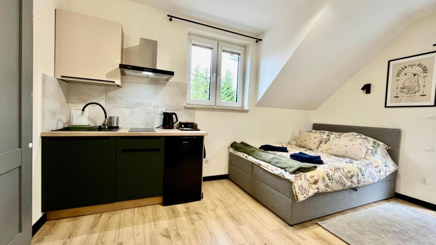 Studio z balkonem. The studio offers air conditioning, a dining area, as well as a private bathroom boasting a shower and a hairdryer. In the fully equipped kitchenette, guests will find a stovetop, a refrigerator, kitchenware and an electric kettle. Featuring a balcony, this studio also features a wardrobe, heating and a flat-screen TV. The unit has 1 bed. Studio - 2 osobowy. Powierzchnia pokoju ok.: 20 mkw. ;